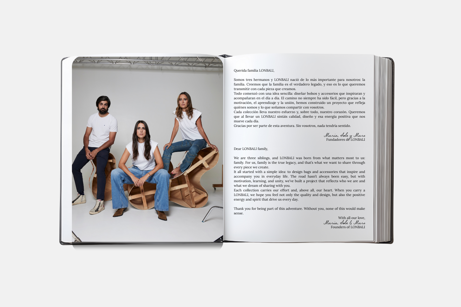 María aporta serenidad y orden; Sole es pura energía creativa; Marc, el benjamín de los tres, es el equilibrio que lo conecta todo. De esa alquimia nace el espíritu LONBALI: atrevido, funcional y sin límites.