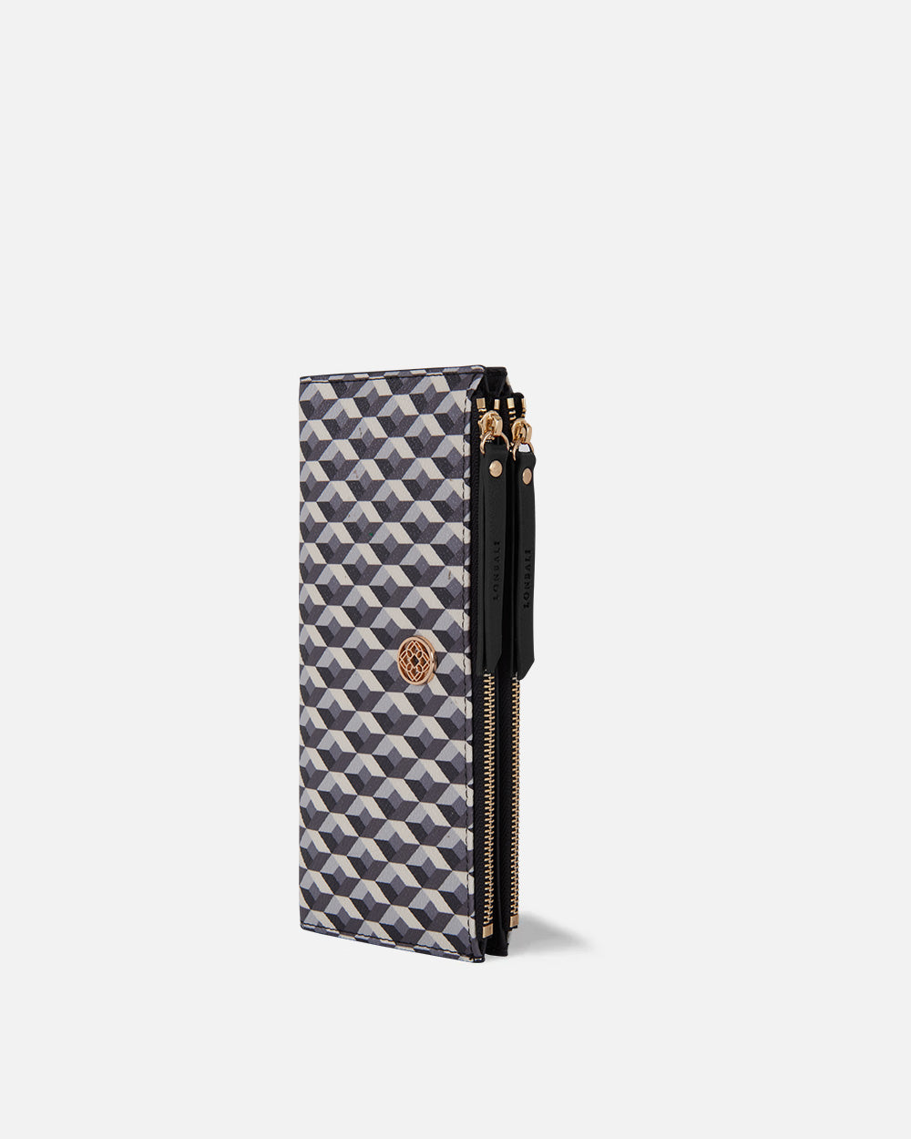 La nueva billetera con print Born de Lonbali, presenta un diseño compacto con capacidad para seis tarjetas en cada lado y billetes. Además tiene dos compartimentos con cierre de cremallera, que permiten guardar las monedas. Incluye el logotipo de la marca grabado en la parte frontal.