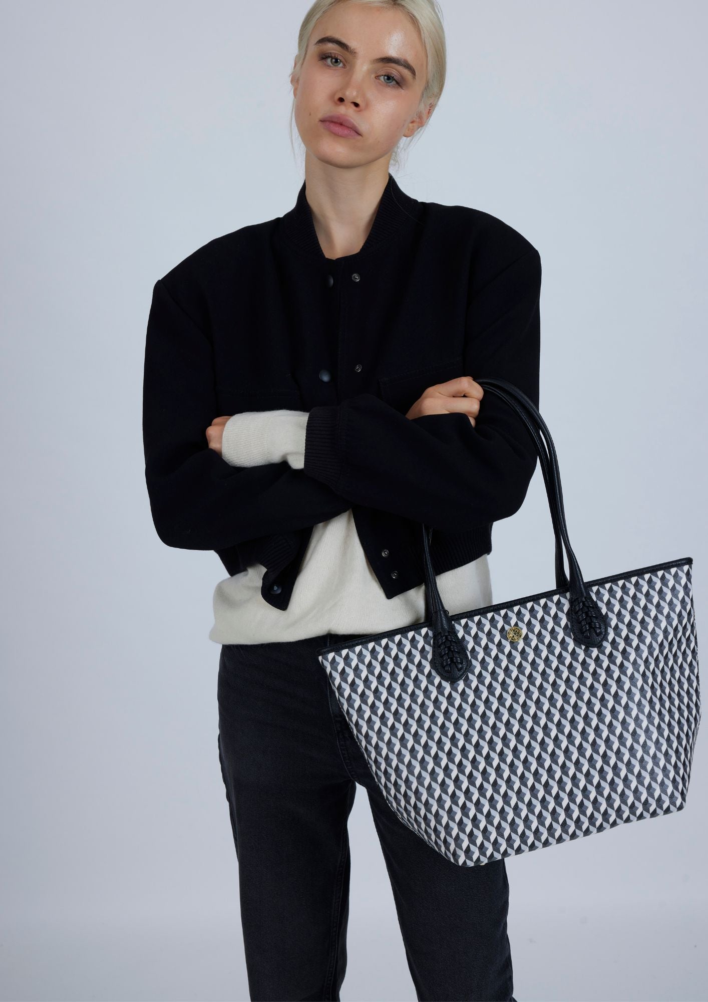 El bolso shopping Midi estampado de la línea Born de Lonbali es la versión mediana del top ventas Bolso Born. Se diferencia por su tamaño más reducido y su cierre de cremallera. Tiene un forro interior de poliéster a juego con el color del ribete y el asa. Incluye un bolsillo con cierre de cremallera en el interior.