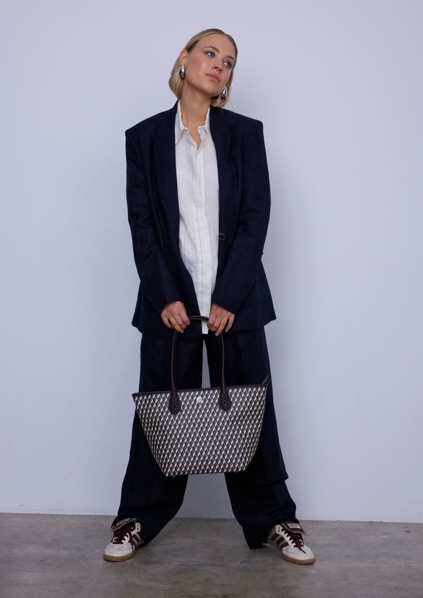 El bolso shopping Midi estampado de la línea Born, de Lonbali es la versión mediana del top ventas Bolso Born. Se diferencia por su tamaño más reducido y su cierre de cremallera. Tiene un forro interior de poliéster a juego con el color del ribete y el asa. Incluye un bolsillo con cierre de cremallera en el interior.