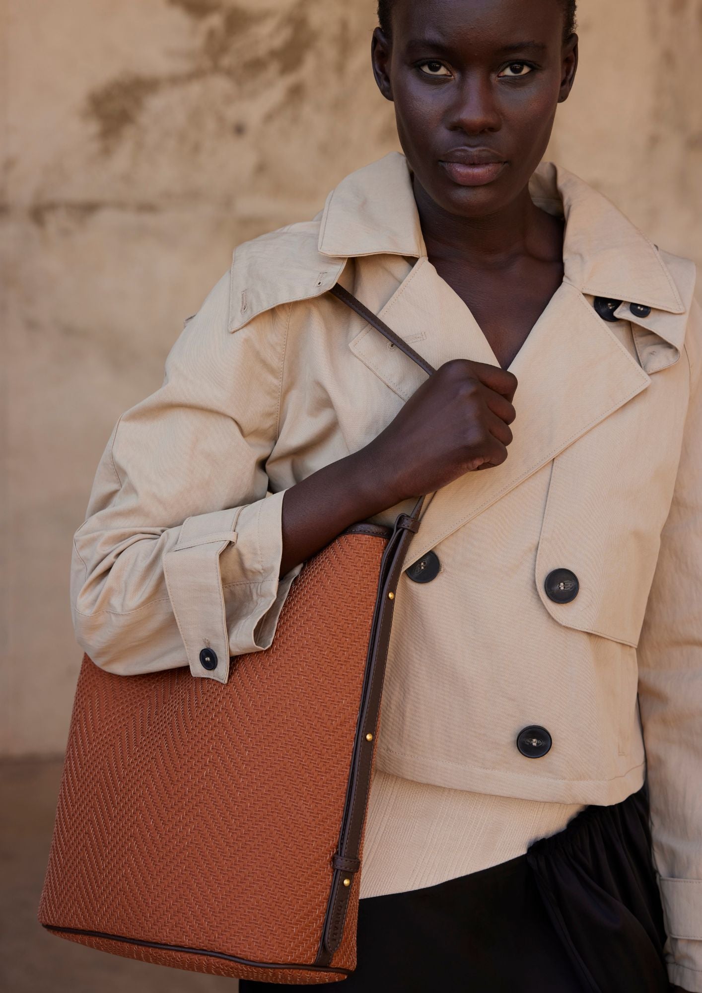 Este bolso tipo Bucket de Lonbali es ideal para el día a día. Tiene un diseño moderno con textura trenzada en tonos terracota que combina con todo. Espacioso por dentro, perfecto para llevar tus esenciales diarios. Su asa ajustable resistente, lo hace cómodo de llevar al hombro o en la mano, y su estructura mantiene la forma sin ser rígida.