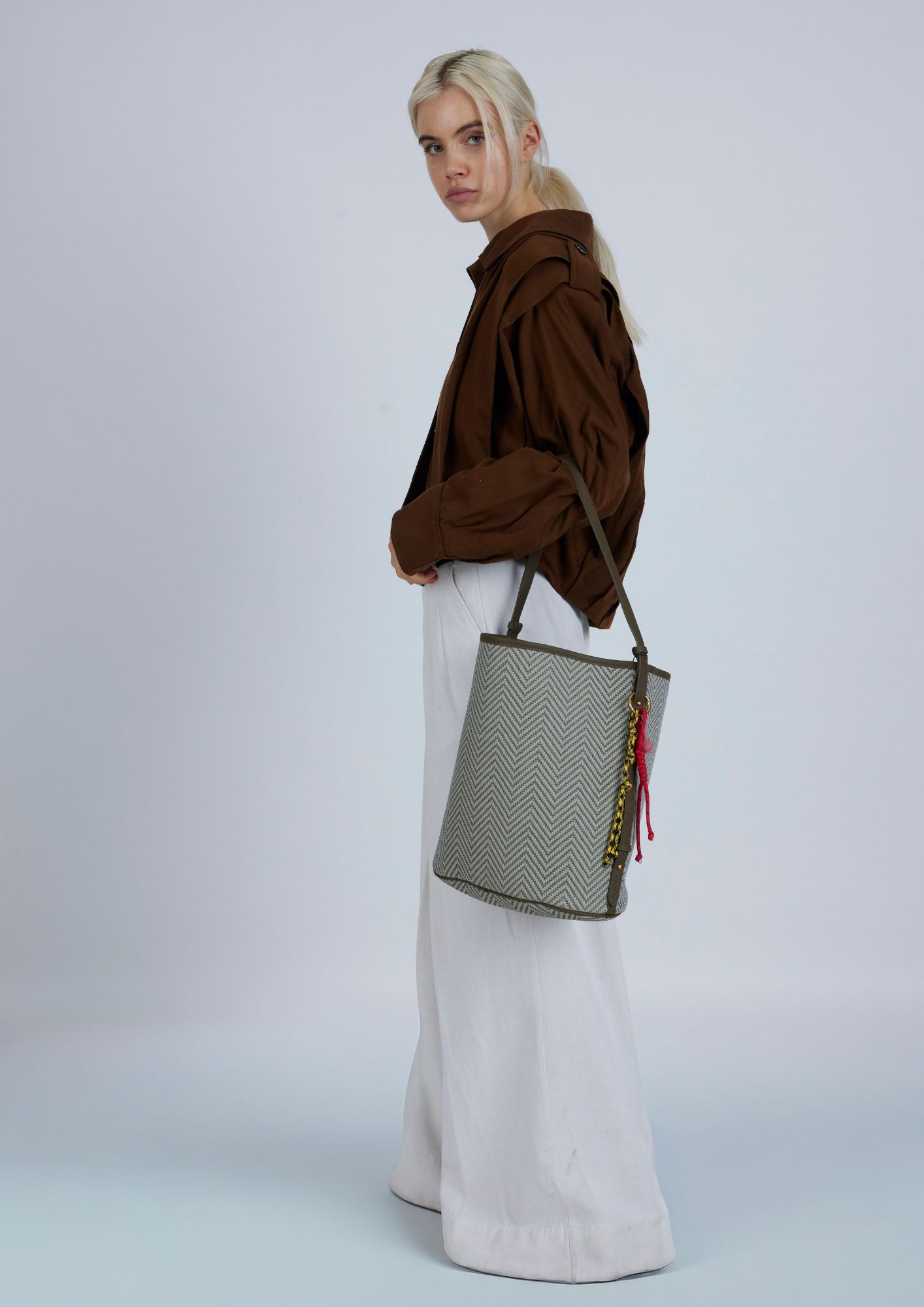 Este bolso tipo Bucket de Lonbali es ideal para el día a día. Tiene un diseño moderno con textura trenzada en tonos verdes que combina con todo. Espacioso por dentro, perfecto para llevar tus esenciales diarios. Su asa ajustable resistente, lo hace cómodo de llevar al hombro o en la mano, y su estructura mantiene la forma sin ser rígida.