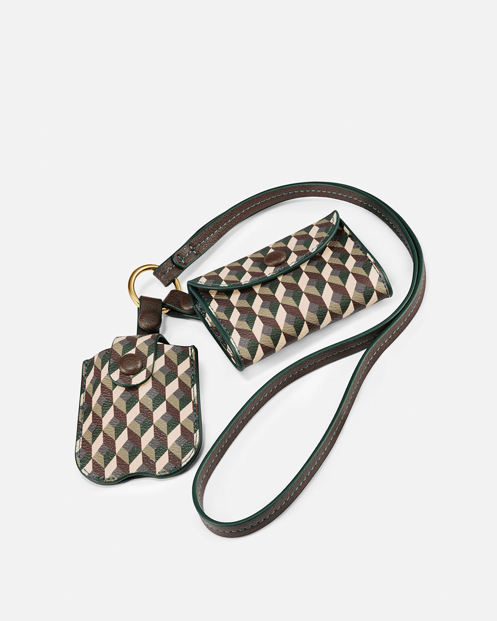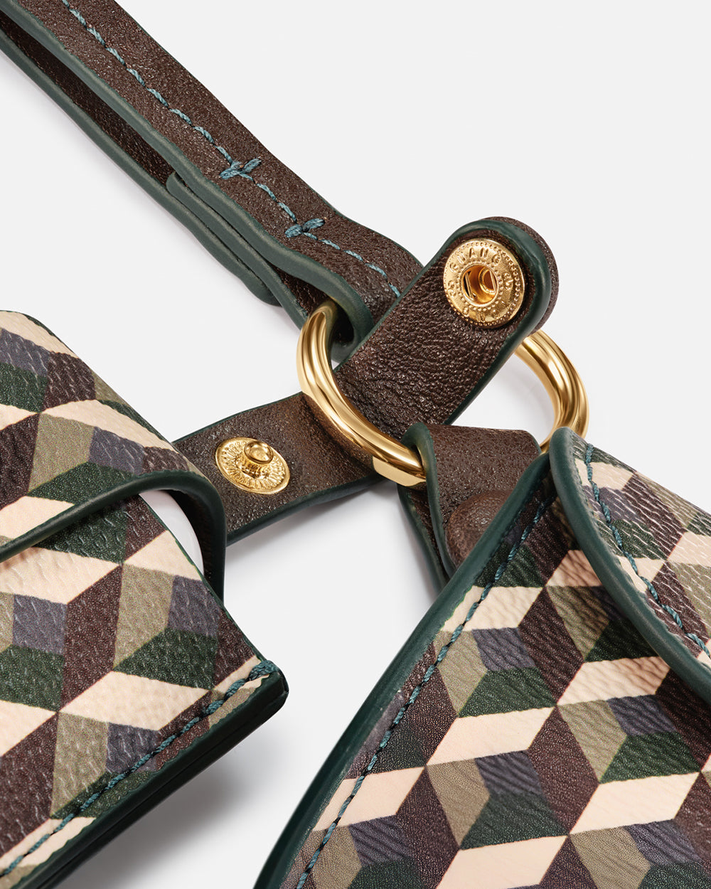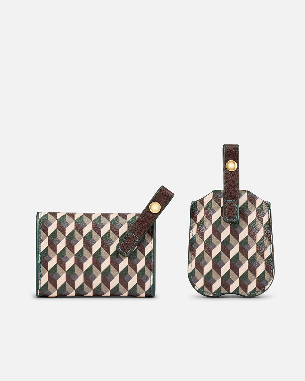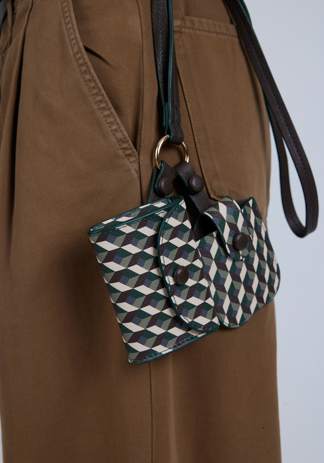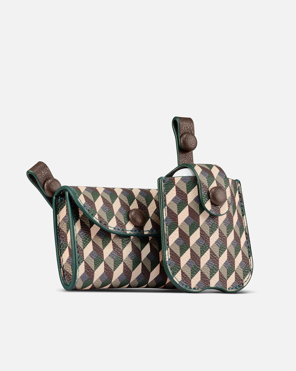 El Mini Duo Case es un set de dos estuches compactos caracterizados con el emblemático estampado geométrico Born en tonos marrones y verdes. Incluye una funda para auriculares con cierre de broche y trabilla para colgar fácilmente, y un mini estuche horizontal perfecto para guardar monedas, llaves o pequeños accesorios.