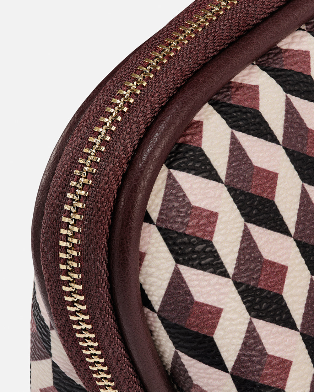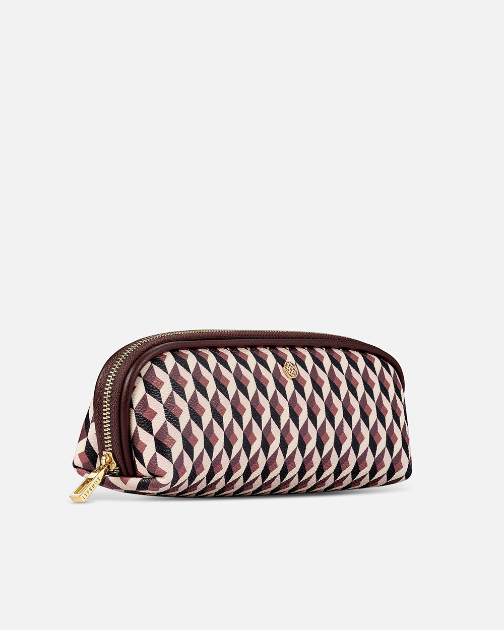 Con un diseño geométrico en tonos granate y rosado, el nuevo estuche de Lonbali combina elegancia y practicidad. Ideal para organizar artículos personales o de papelería, cuenta con cierre metálico dorado y acabado de alta calidad.