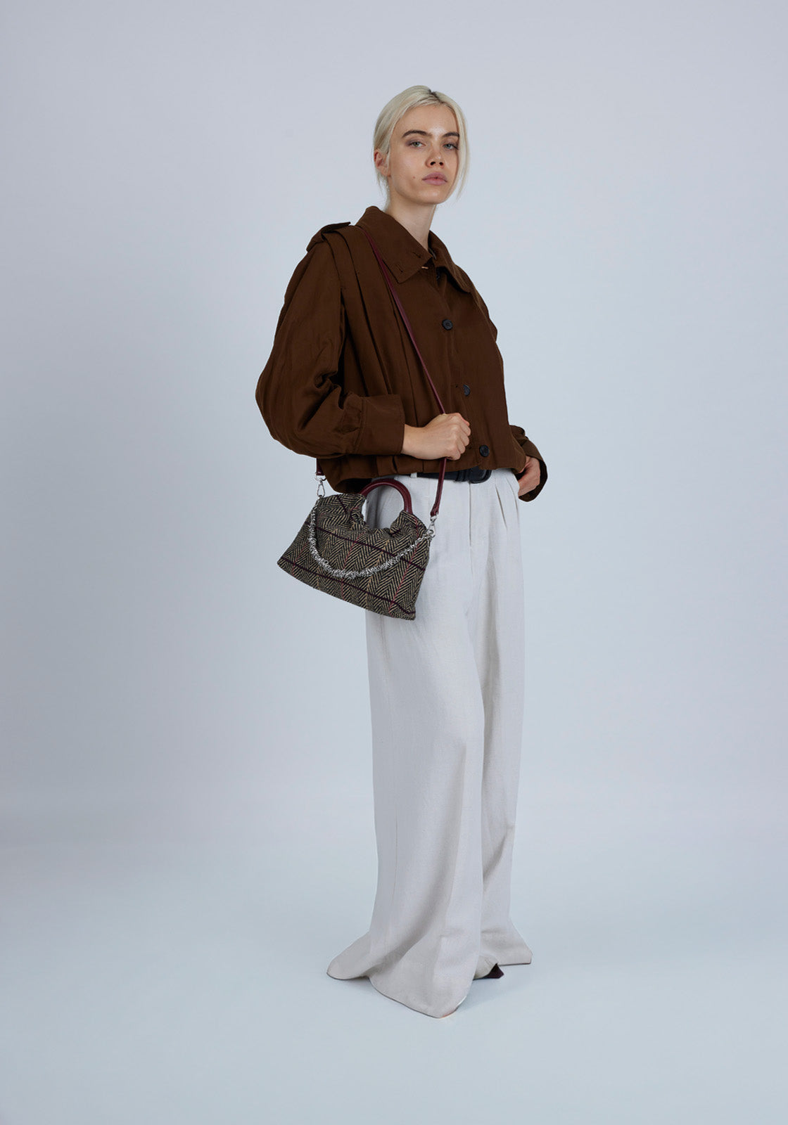 El Bolso Lucca Large Tartan Black combina diseño vanguardista y versatilidad en una pieza que no pasa desapercibida. Diseñado con acabados en burdeos con efecto arrugado, aporta un toque moderno y atrevido a cualquier look.