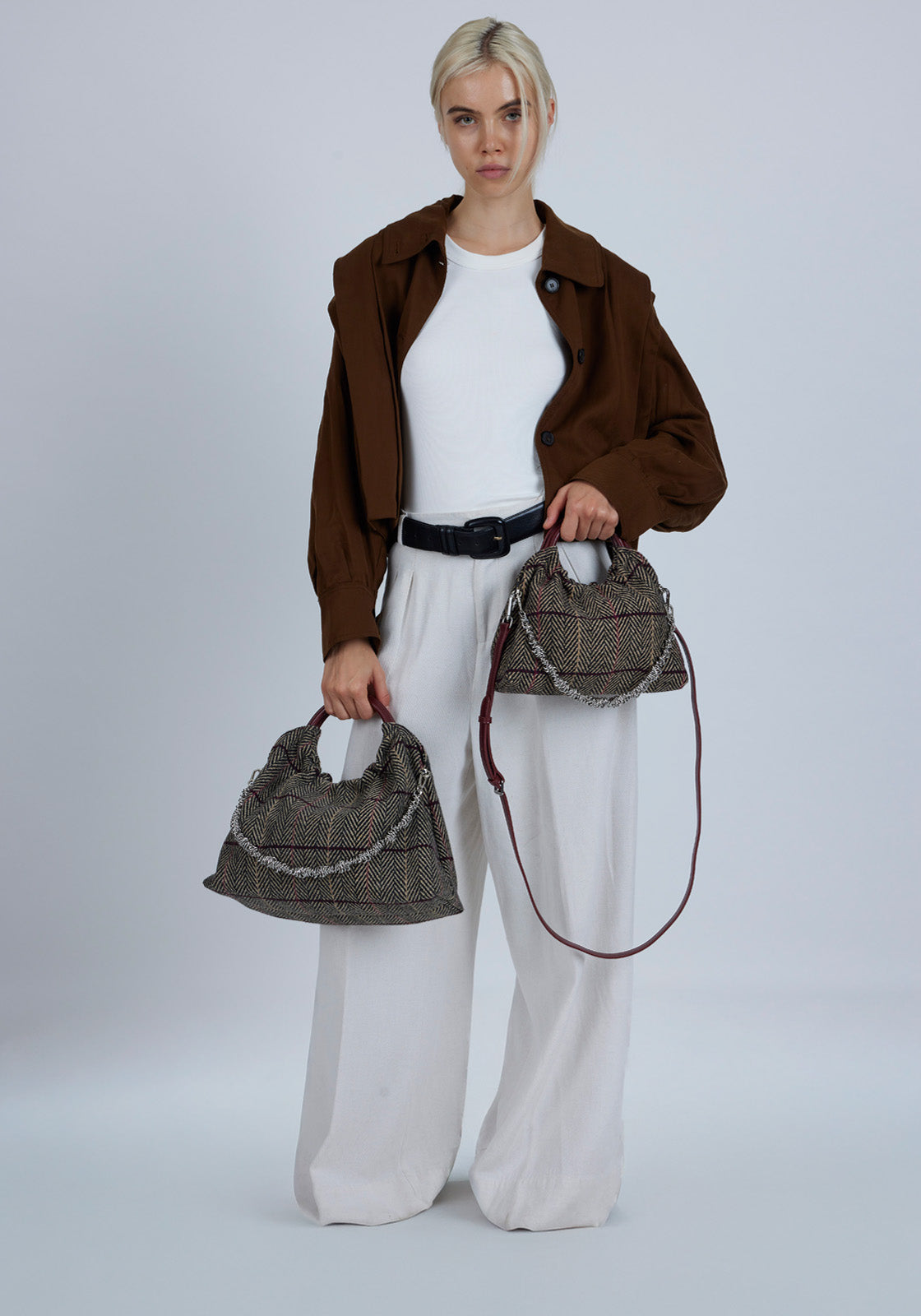 El Bolso Lucca Small Tartan Red combina diseño vanguardista y versatilidad en una pieza que no pasa desapercibida. Diseñado con acabados en tartán burdeos con efecto arrugado, aporta un toque moderno y atrevido a cualquier look.