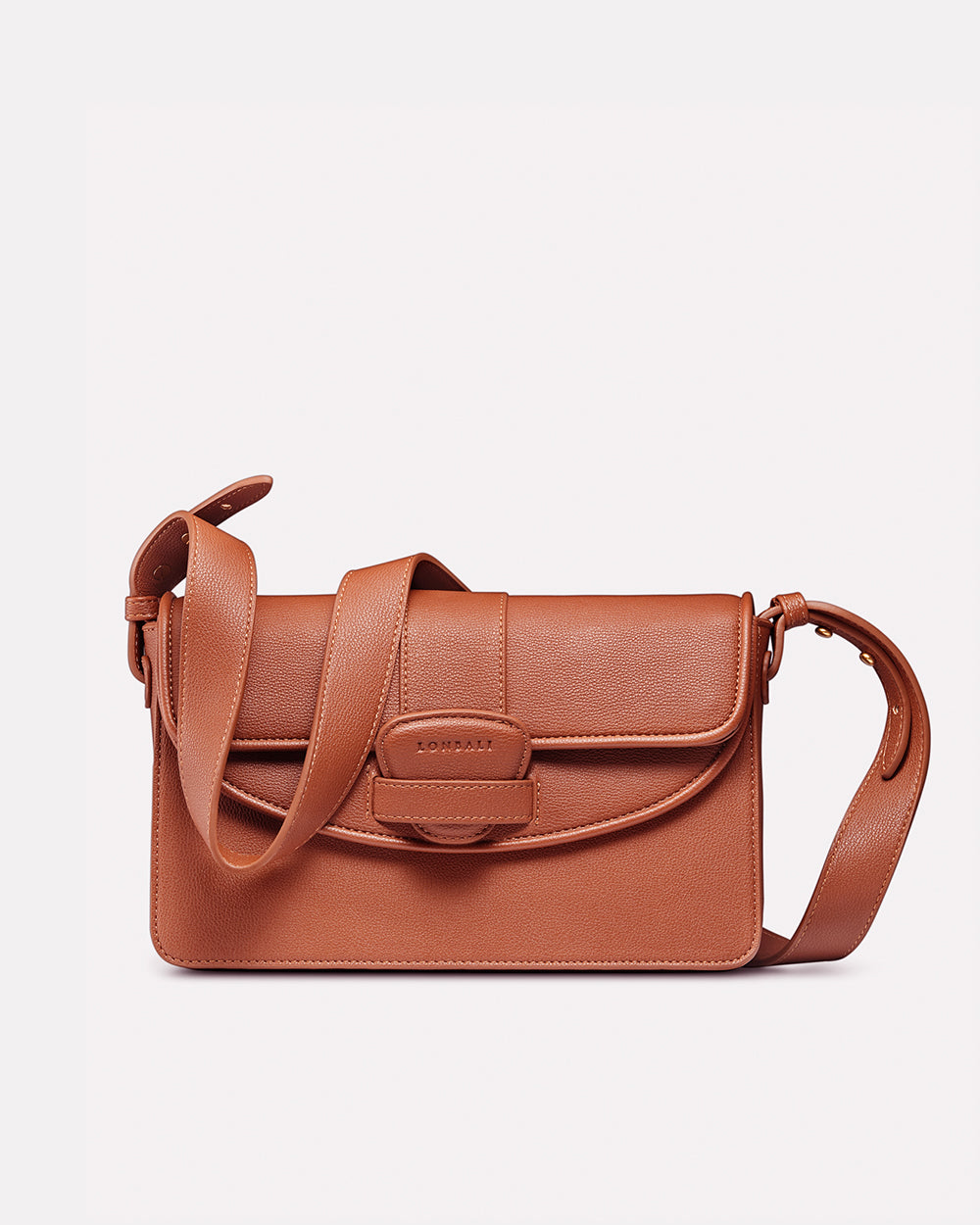 Confeccionado en material de alta calidad con textura suave y resistente, presenta una estructura compacta pero funcional. Su cierre frontal con solapa y detalle decorativo aporta un toque sofisticado, manteniendo tus pertenencias seguras. Incorpora una correa ajustable que permite llevarlo cómodamente al hombro o cruzado.